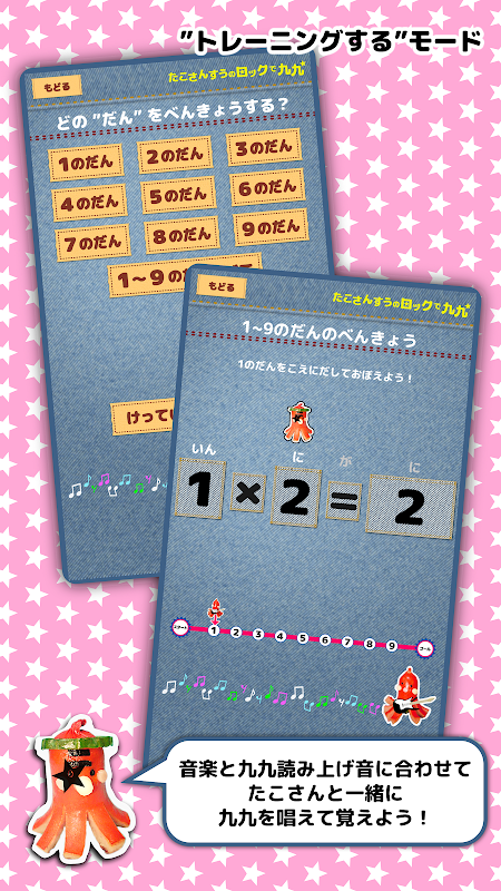 "Tako Math's Rock Multiplication Table" es una aplicación de la serie "Tako Math" que te permite estudiar "Tashizan" y "Hikizan" de una manera divertida.