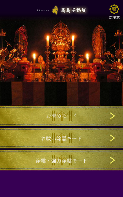 Esta es una aplicación completa de exorcismo, purificación y buena suerte que fue desarrollada en cooperación con Takashima Fudoin para que la utilicen fácilmente estudiantes y personas con dificultades financieras.