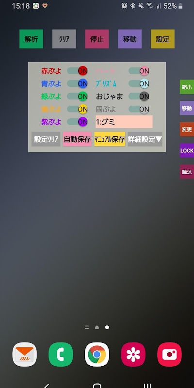 解析ボタンを押すことで、某パズルゲームの画面の上に解析結果を