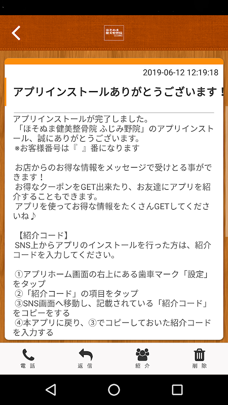 ほそぬま健美のアプリをSNSを通じてお友達に紹介する事ができます。