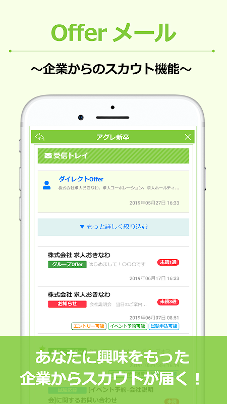 ●Offerメール(簡易スカウト)で、企業からアプローチを受ける就活!