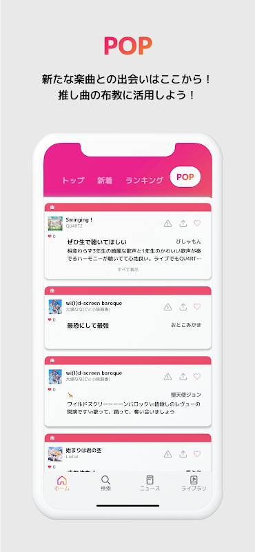 自分で投稿したPOPはもちろん、気に入ったPOPをSNSでシェアすることもできるので、推し曲の布教に大活躍!