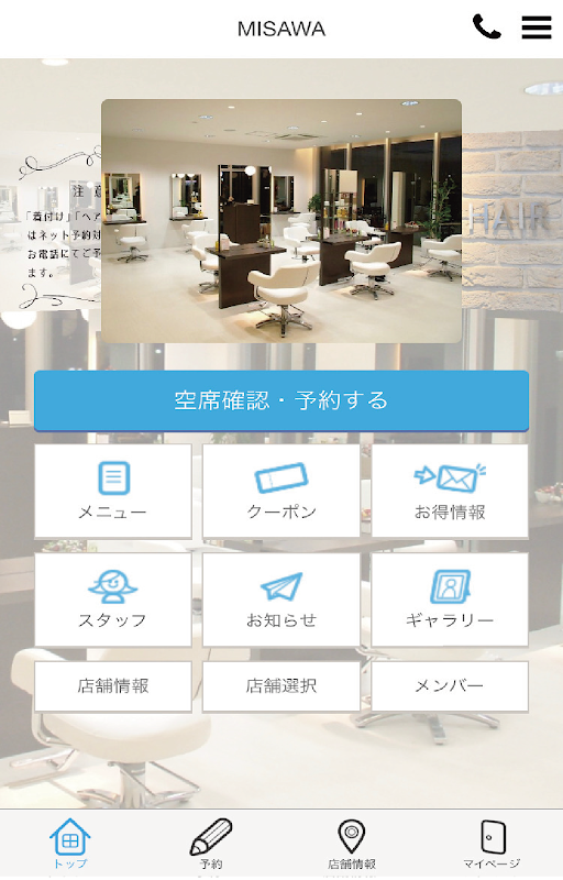 Esta es la aplicación oficial de AMAZING HAIR Misawa, un salón de belleza en la ciudad de Nagaoka, prefectura de Niigata.