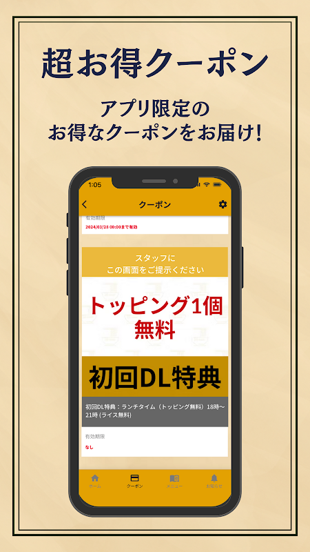 ・Distribuiremos cupones ventajosos exclusivos de la aplicación.