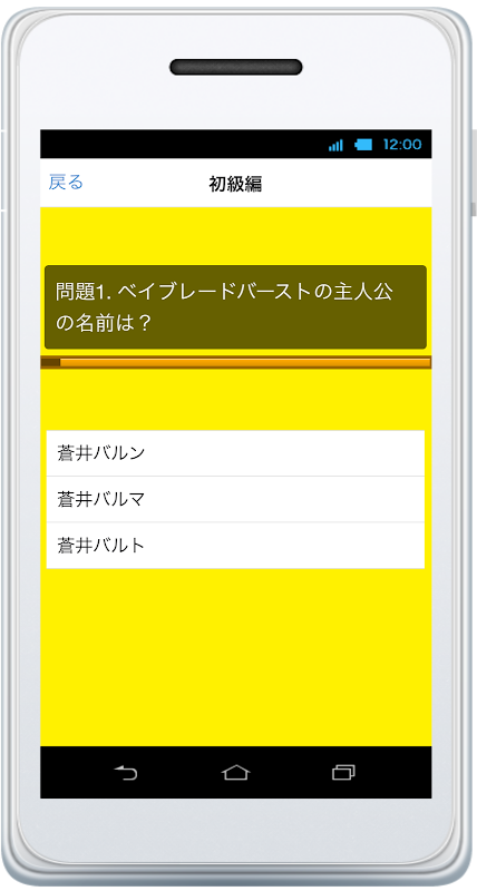 クイズは初級編、中級編、上級編と分かれています。