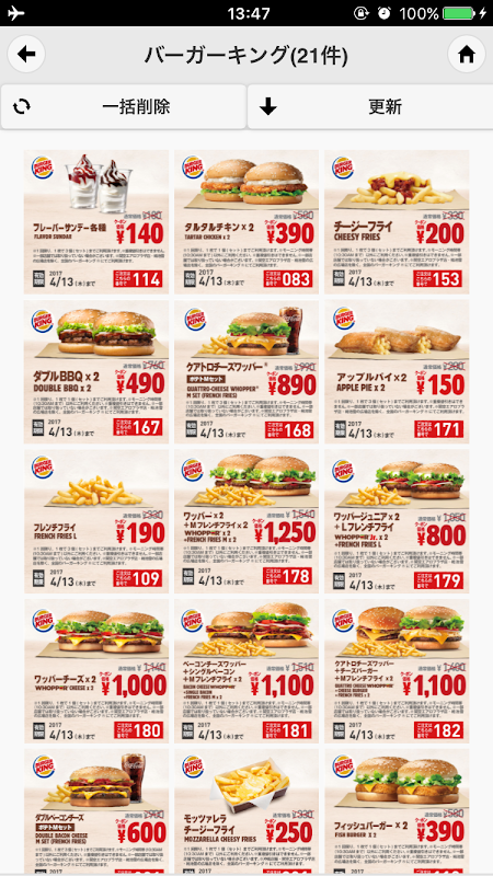 ・1タップでクーポン券をダウンロード、更新できます。さらにオフラインでも参照できます