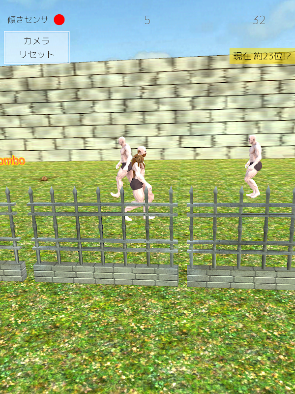 画面を傾けて、向いている方向を操作し、スワイプしてウンチを投げます。半裸のムキムキなおにいさんにウンチを当てると1点です。連続で当てるとコンボとなり、連続で当てた回数×1点の点数です。また、頭部に当てるとヘッドショットで、10倍の点数が貰えます。