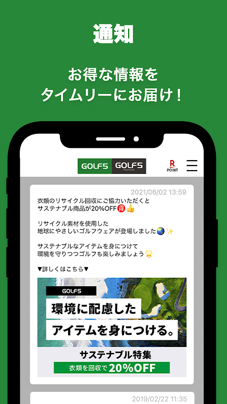 Aplicación oficial de la tienda especializada en equipos de golf "Golf 5". Haga que las compras sean más convenientes y rentables, como las tarjetas de membresía de Alpine Group y los cupones que se pueden usar para comprar en tiendas y en línea.