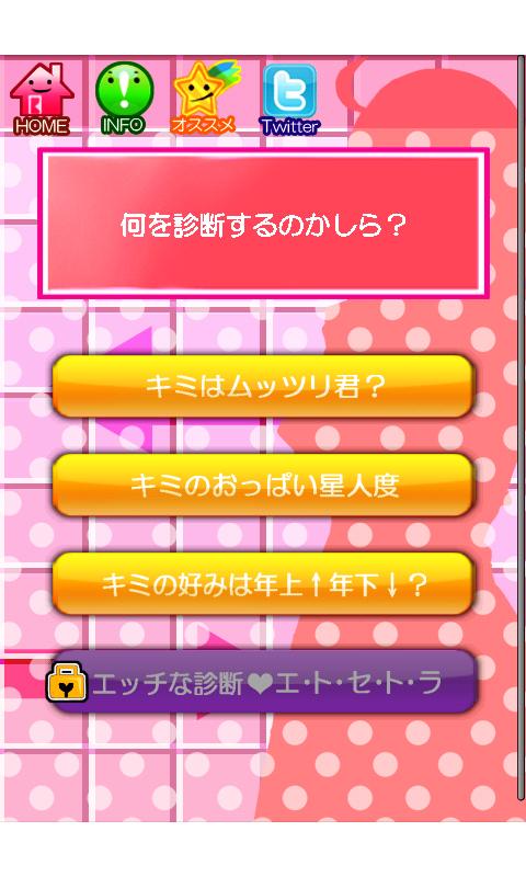 に答えるだけで、日常生活での現実と妄想に隠れた『あなたのエッチ度』の傾向・対策を易しく、リアルに診断してくれますよ。