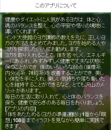 「体をあたためる(ヨガの準備運動)」1番から「瞑想」108番までイラストを見ながら簡単に実践できます。