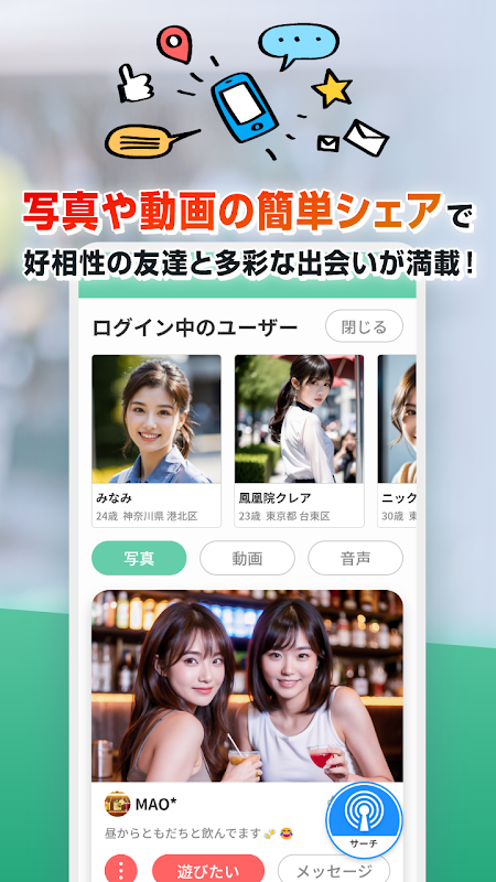 チカイコ(ご近所マッチングで写真や動画もシェアする友達探し)