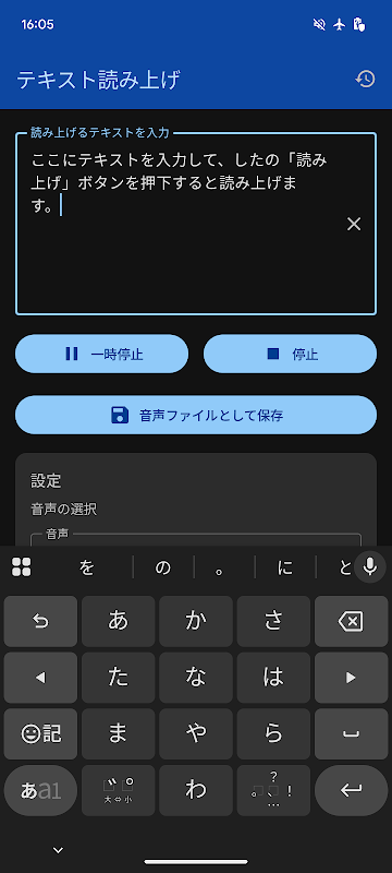 Lee texto en voz alta con una voz japonesa natural. Una aplicación gratuita de texto a voz con ajustes de pronunciación palabra por palabra, omisión de símbolos y funciones de borrado masivo.