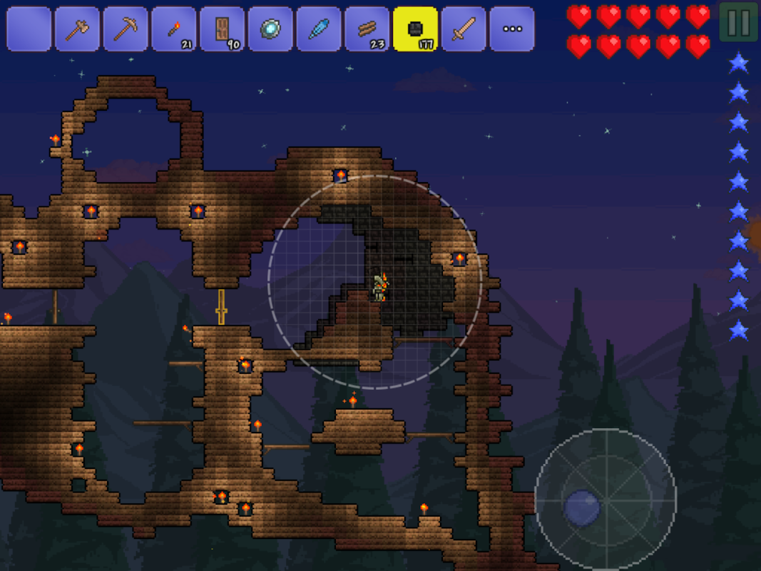 El mundo de Terraria está formado por bloques de madera, tierra, mineral y se pueden recolectar como materiales cortándolo con un pico o un hacha.