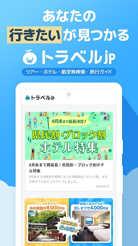 ¡Usado por más de 20 millones de personas! ¡La aplicación "Travel jp" más grande de Japón! ¡Comparando tours baratos y boletos de avión de unas 100 agencias de viajes! ¡Las guías de viaje también son gratis!