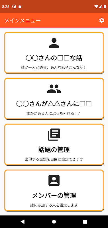 New Topic Maker es una aplicación que proporciona temas de los que se puede hablar cuando se reúne una gran cantidad de personas.