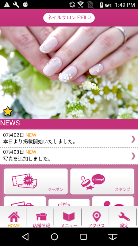 山形県山形市青田にあります、ネイルサロン E:FILO の公式アプリでは、このような事ができるアプリです。