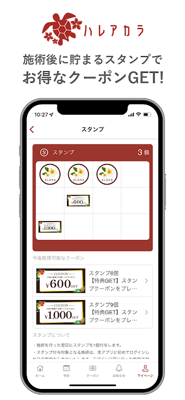 Si acumula sellos de visita, se le emitirá un cupón de descuento (pueden aplicarse condiciones)