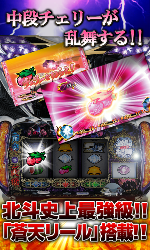 宿命の刻に「勝利」分岐が加わり出玉への期待感が大幅にアップ!全ての小役が中段チェリーに結びつく「蒼天リール」を新搭載し、シリーズ史上最強の「中段チェリー」が誕生。