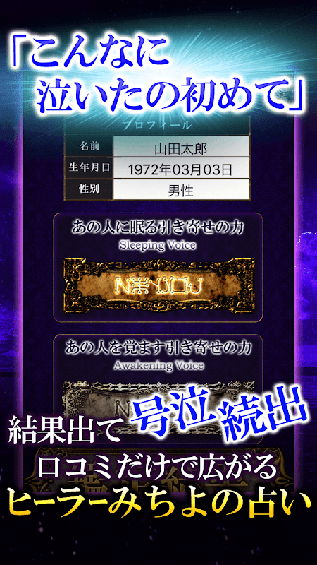 ※一度ご購入された占いも、「違った端末でアプリを再インストールした場合」や、「一度アプリをアンインストールしてから再度インストールし直した場合」には再購入が必要です。こちらご承知下さいませ。