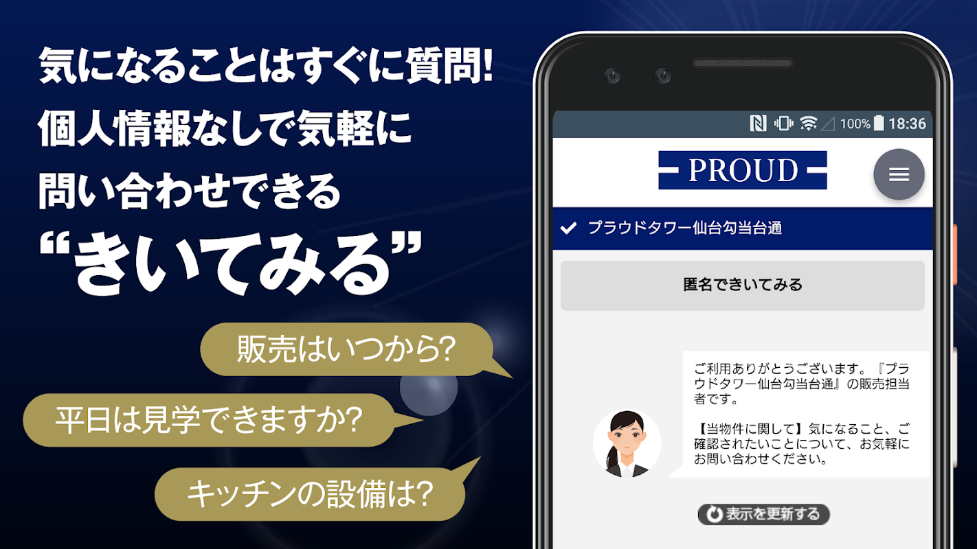 気になること・不安なこと・もう少し詳細を聞いてみたいこと、わざわざ電話することなくアプリだけでメッセージを送って物件の担当者に質問ができます。