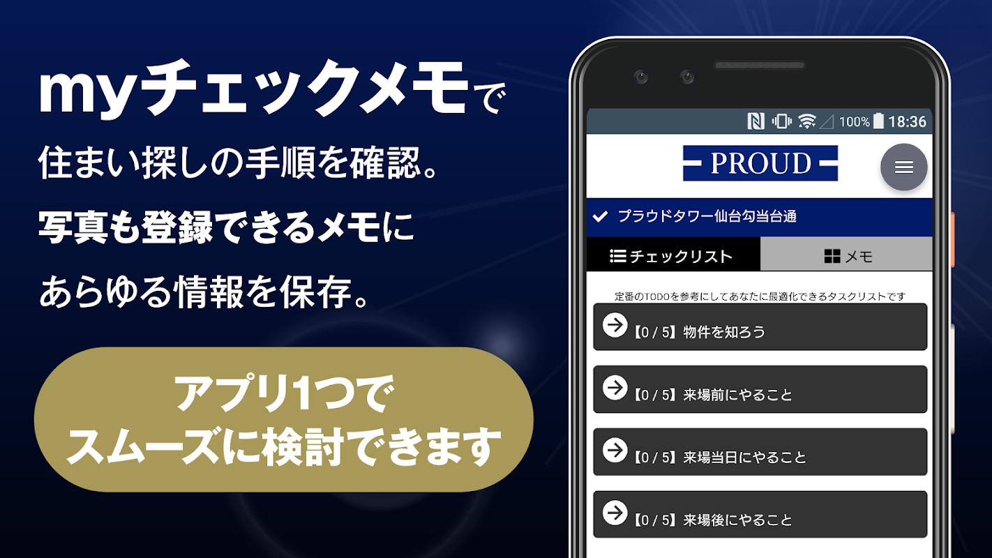 公式サイトでは手に入らない情報やもっと知りたい情報をスマートフォンの中に集約し、見学前後の購入検討に必要な便利機能も活用することで、一生に一度の大きな買い物を、楽しみながら、じっくりと、満足な検討ができるマンションメモ帳を作れます。