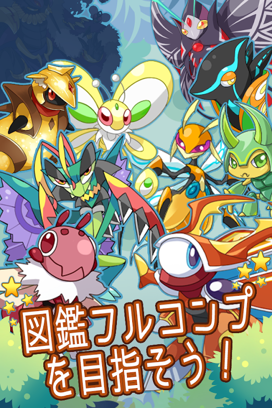 かわいいムシたちを捕まえて育てよう! シンプル操作バトルで空いた時間にサクッと楽しめます。バトル中にムシたちが進化!新感覚のゲームをどうぞお試しあれ!