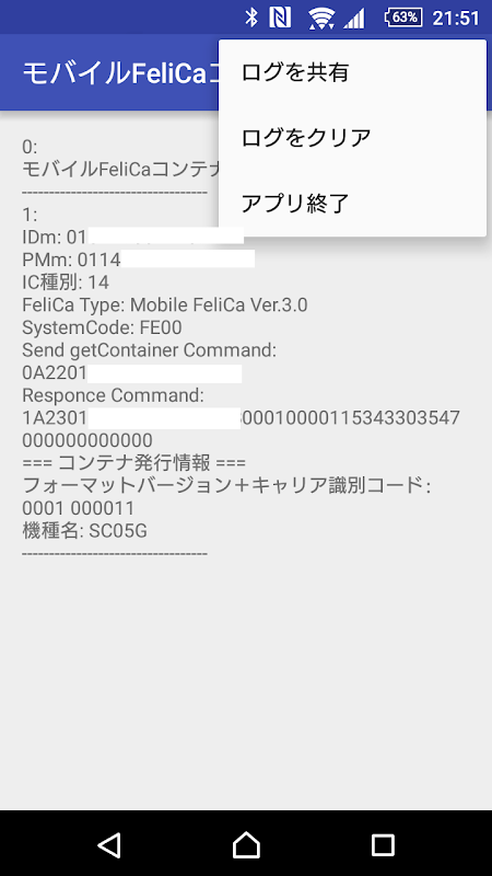 モバイルFeliCaコンテナ発行情報取得アプリ 1.0