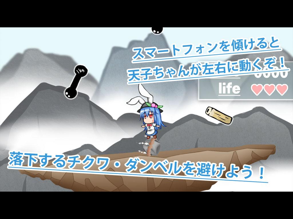 天子ちゃんがユラユラと移動しながらチクワとかダンベルを避けたり毛玉を踏み潰したりするゲームです。ハイスコアを目指そう(ヽ'ω`)