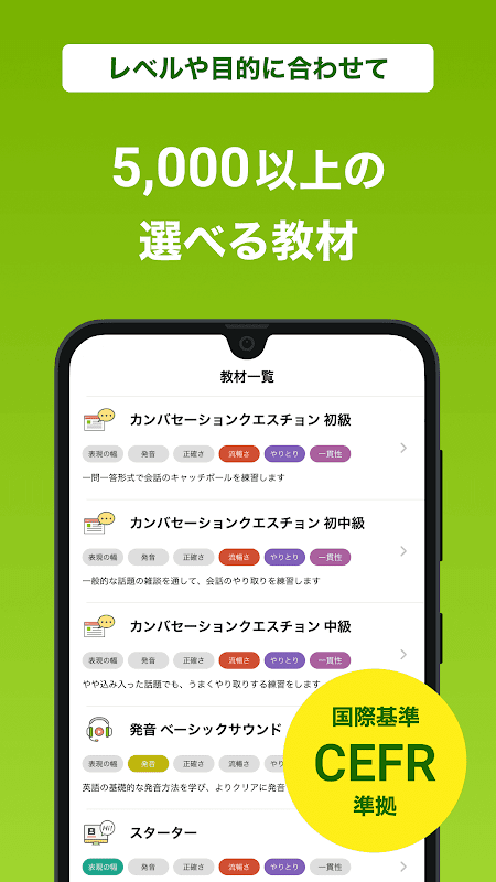 El objetivo es hablar inglés. Hablar en línea a diario mejora tus habilidades de conversación en inglés. Hemos creado una experiencia de aprendizaje que te permite aprender y hablar sin dudarlo. ¡Toma clases en cualquier momento y lugar, y estudia por tu cuenta cuando quieras! ¡Mejora tus habilidades de conversación en inglés de forma eficiente con nuestra app!