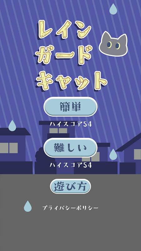 Puedes elegir entre tres niveles de dificultad del juego: "Fácil", "Normal" y "Difícil". A medida que aumenta el nivel de dificultad, aumentará la velocidad de movimiento del gato y la frecuencia de la lluvia.
