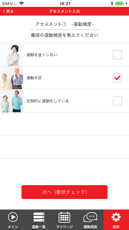 ・「運動頻度」や「症状」チェック結果にもとづき、最適な運動プログラムをレコメンド