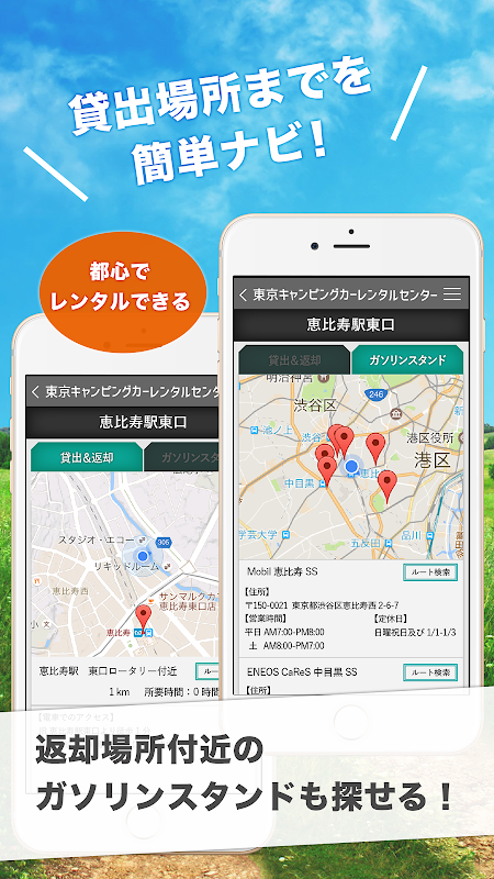 ・現在地から貸出・返却場所までをナビ表示、返却前に立ち寄れるガソリンスタンドも地図で案内