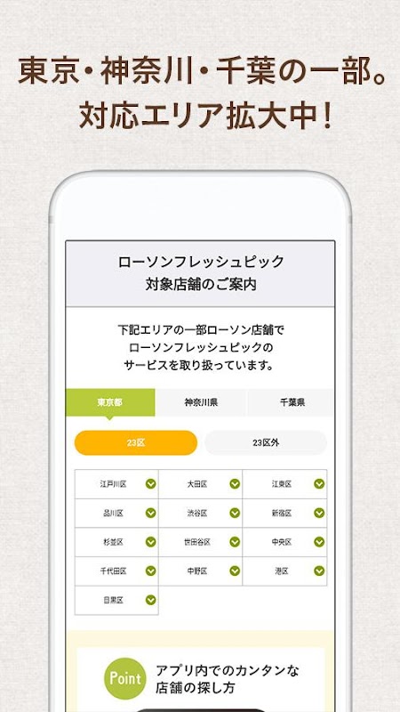東京都・神奈川県・千葉県の一部ローソン店舗が対象エリアです。