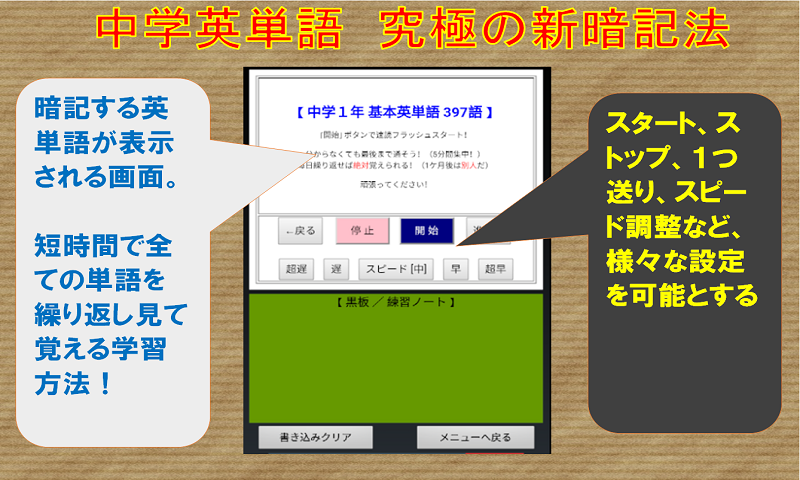 中学校英単語 究極の新暗記法!5分で1000単語を目指します。このアプリで英単語を学習すれば、最終的に「5分で1000単語」の確認が可能となります。