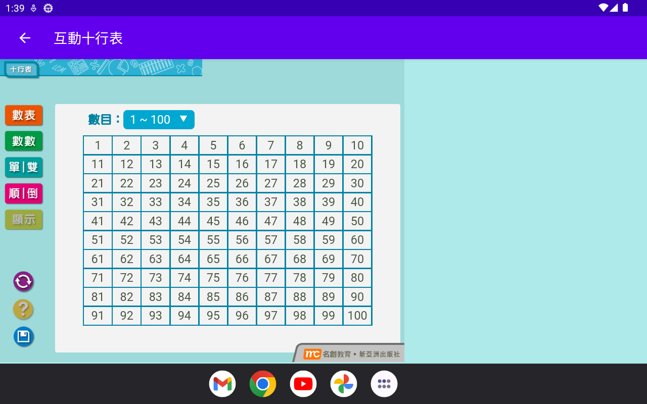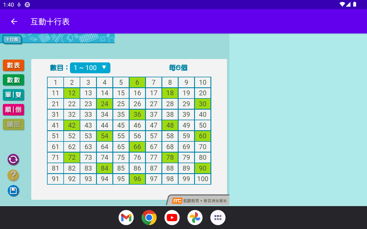 La "Tabla interactiva de diez líneas" puede mostrar los múltiplos de un determinado número hasta 100. Simplemente haga clic en el cuadrado numérico en la tabla de diez líneas y agregue una marca en el cuadrado.