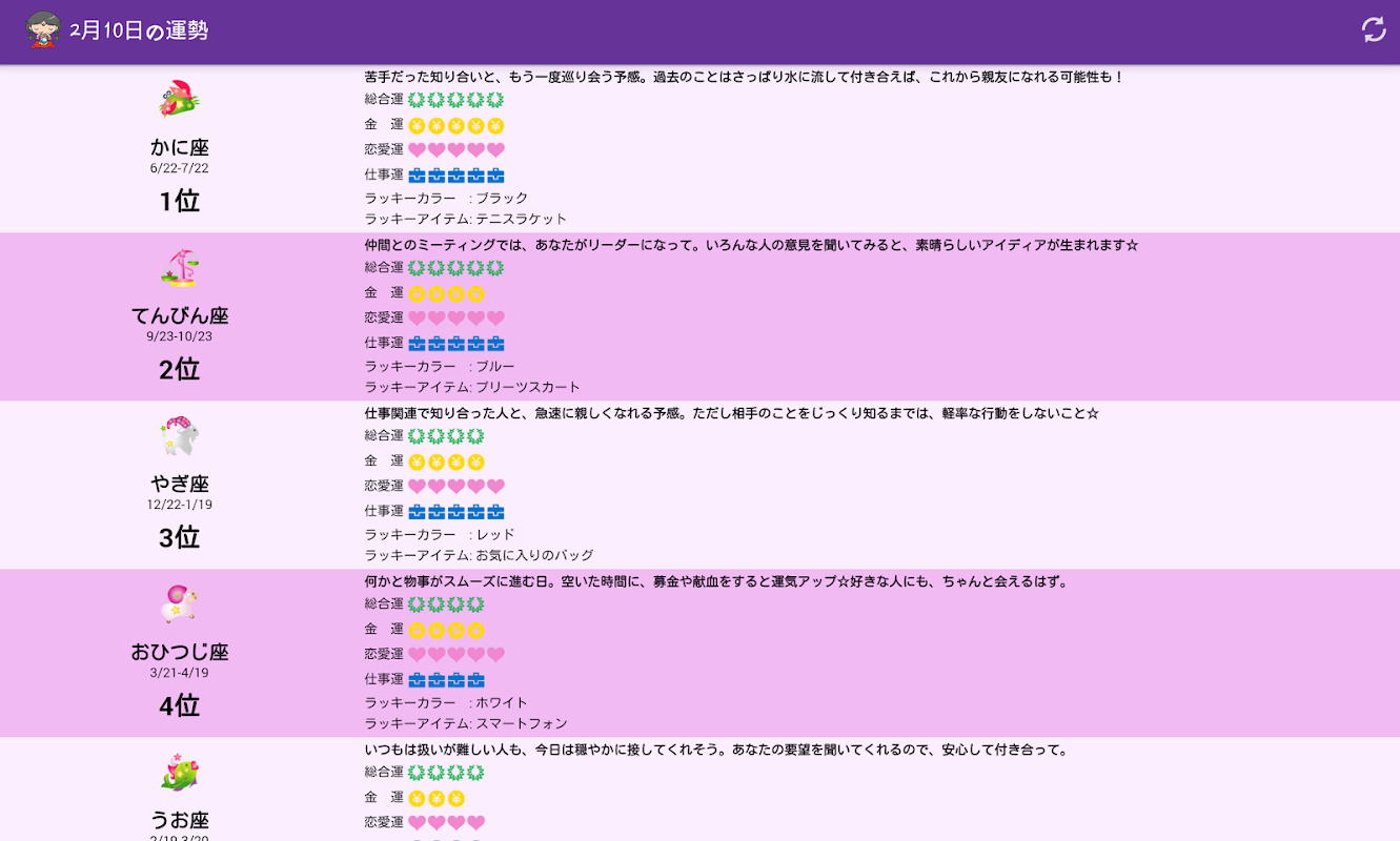 APKPure utiliza verificación de firmas para garantizar descargas de 今日の運勢 -12星座占い- APK libres de virus para ti.