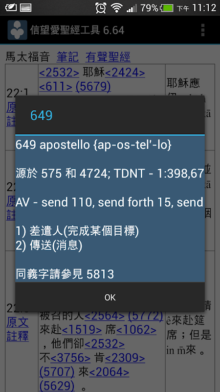 Proporciona comparación de versiones de la Biblia en chino, número de texto original, diccionario de texto original, análisis de vocabulario, Biblia en audio, comentarios y otras herramientas de estudio de la Biblia, que se pueden usar sin conexión y el contenido se actualiza con frecuencia.