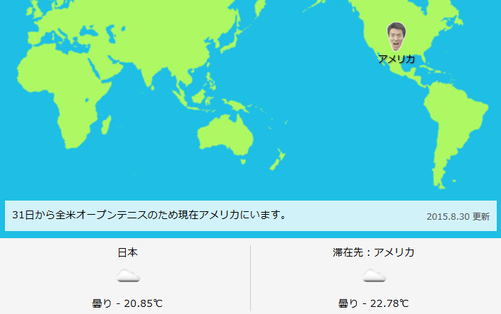 松岡修造氏の現在地を確認するためにこのアプリをご利用ください。修造の現在地によって世界の天気が変わっている!?