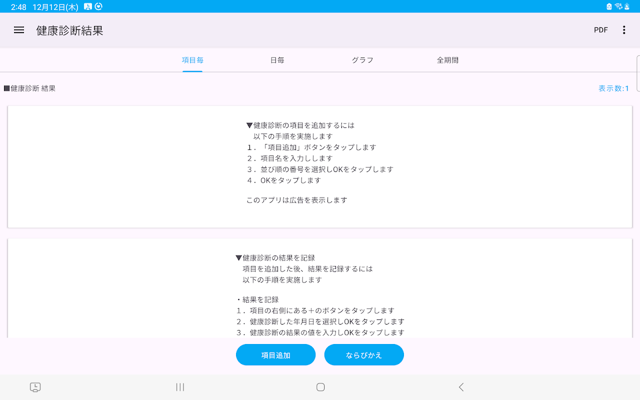 ▼Para registrar los resultados de los controles médicos en la pantalla de cada elemento, siga los pasos a continuación: