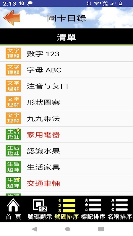 El aprendizaje con tarjetas ilustradas se presenta uno por uno, lo que lleva a los alumnos a aprender de forma visual. Tiene un efecto muy bueno, por lo que existen muchos productos de tarjetas ilustradas en el mercado. El objetivo de desarrollo de este software es proporcionar a los padres teléfonos móviles o tabletas para que utilicen varias tarjetas gráficas temáticas en cualquier momento y en cualquier lugar para lograr el efecto de aprendizaje interactivo para los niños. El contenido de este software se divide en tres categorías: comprensión de textos, interés de la vida y aprendizaje de conocimientos, incluidos los números 123, letras ABC, pinyin ㄅㄆㄇ, vehículos de transporte, muebles para el hogar, frutas, pelotas, banderas del mundo, etc. Más de 10 temas, objetos Excelente relación calidad-precio. El contenido de este software se agregará en cualquier momento y se proporcionarán actualizaciones para descargar. ¡Bienvenido a escribirnos para sugerir una votación o proporcionarnos más materiales de tarjetas temáticas!
