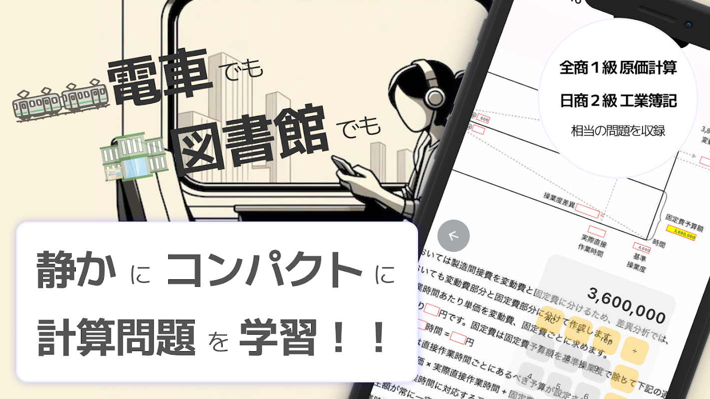 Aprenda problemas de cálculo para Zensho Bookkeeping Grado 1 Contabilidad de costos y Nissho Bookkeeping Grado 2 Contabilidad industrial de manera fácil y silenciosa usando la calculadora integrada en el tren o en la biblioteca. Aprenda en cualquier lugar sin depender de complicados textos en papel o conjuntos de problemas.