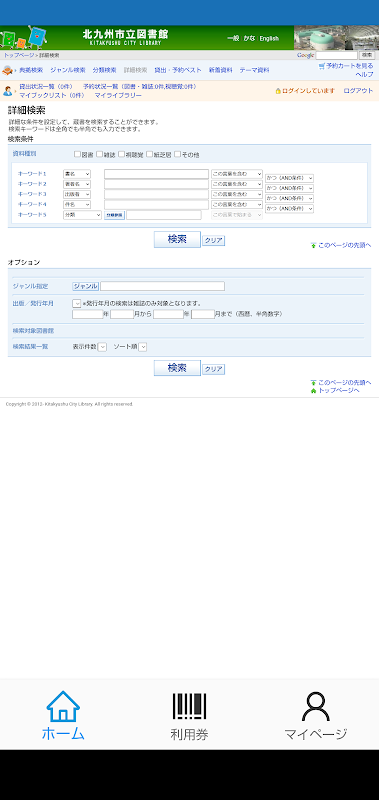 本アプリからオンライン蔵書目録(WebOPAC)に接続し、書籍の検索や予約を行うことができます。