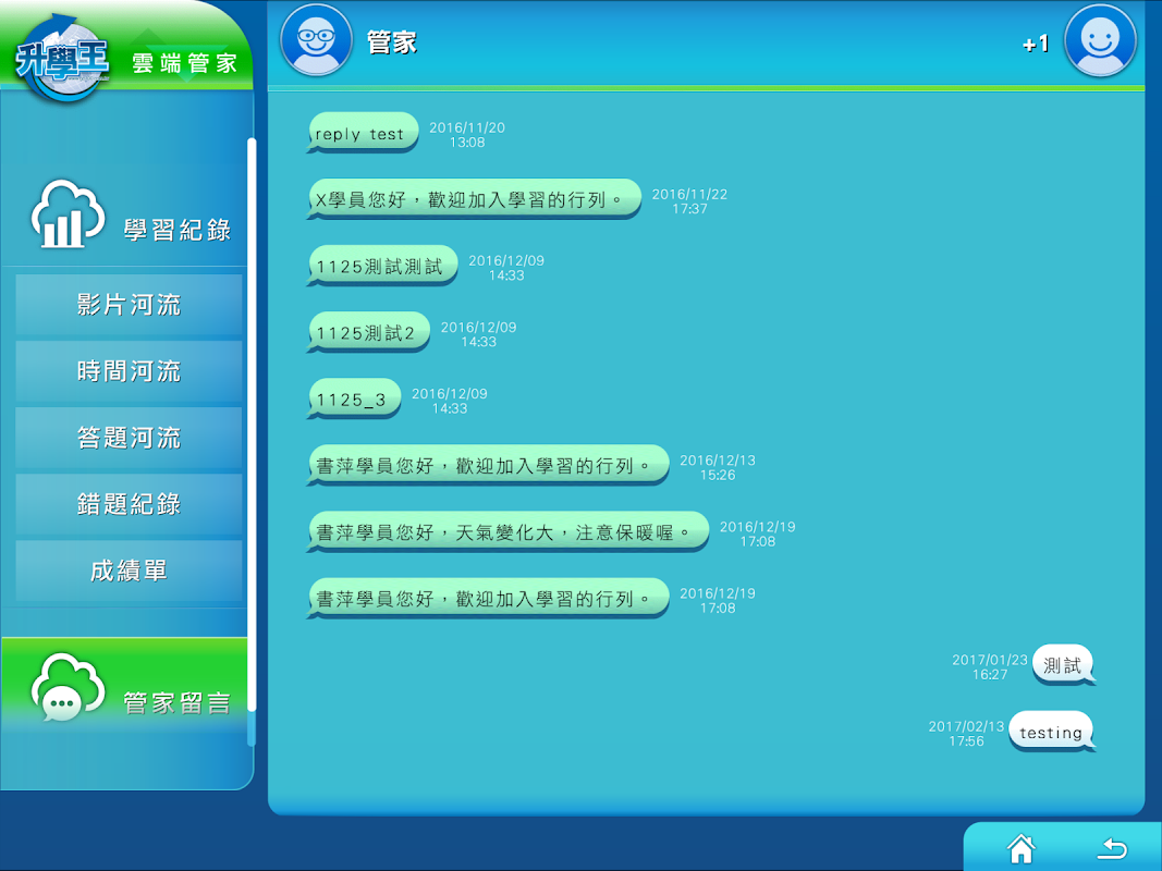 • Mensaje de ama de casa - a través del servicio de mayordomo en tiempo real, observar al niño para interactuar con el ama de llaves.