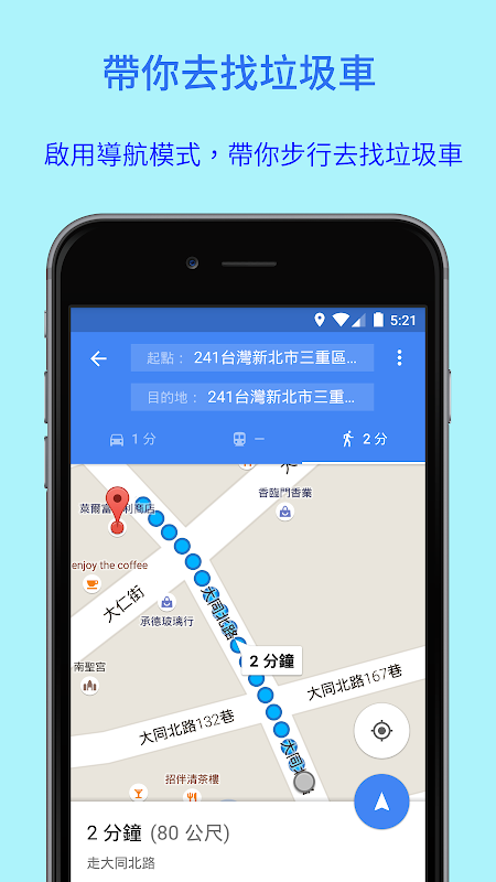 ★ 導航功能:載入Google Map導航,帶你去倒垃圾