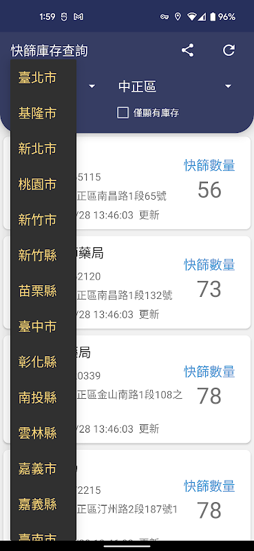 台灣快篩庫存查詢 - 快篩實名制、藥局查詢、即時庫存 1.1.7