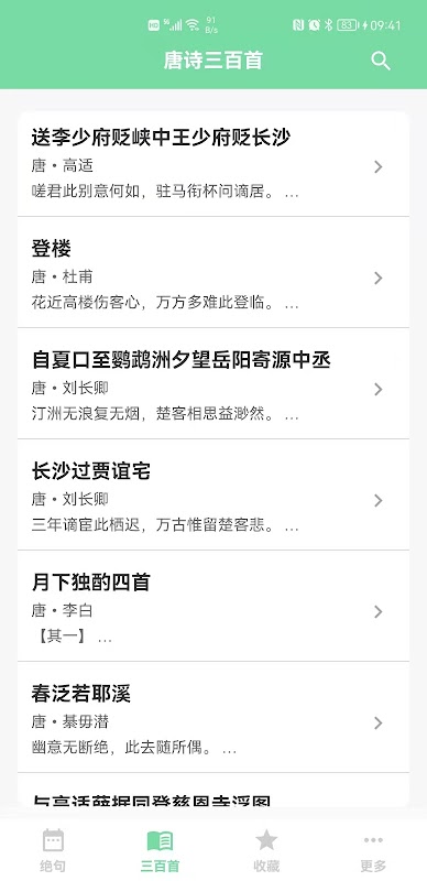 唐诗三百首饱含:注释,赏析,译文等几部分,内容丰富,易懂,简洁,是学习唐诗的最佳选择。