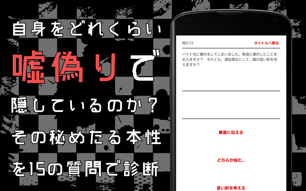 嘘吐き診断 - あなたが見せない裏の顔?Testiiの診断・ 11.0
