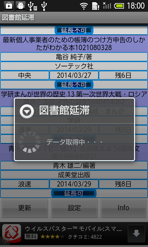 大阪市立図書館用、返却日管理及び延滞処理を行うアプリです。