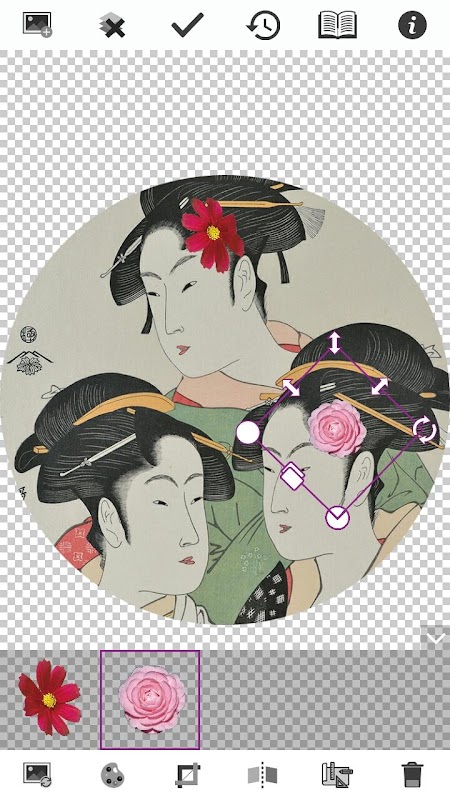 好みの背景、好みのオブジェをいくつでも自由な形にして貼り付けて、オリジナル性の高い絵を作りましょう。