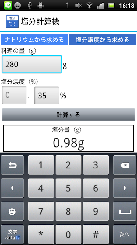 ナトリウムや塩分濃度から簡単に塩分量(食塩相当量)を求めることができる塩分計算機アプリです。